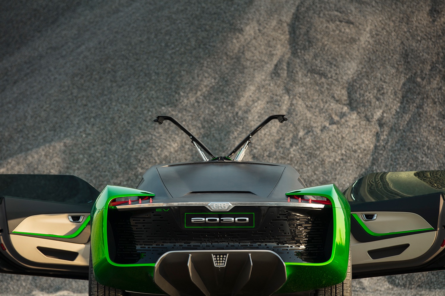 The Vision 2030 was completely inspired by the project that the Arab State is pursuing, with the aim of radically accelerating the country’s green transformation. Saudi Arabia asked GFG Style to design a model that would perfectly adapt to their region, made up of completely new and decidedly wide roads, but also of deserts with dunes and rough terrains. For these reasons, this car has been designed to make it able to travel in a high-performing electric mode both on motorways and desert dunes.